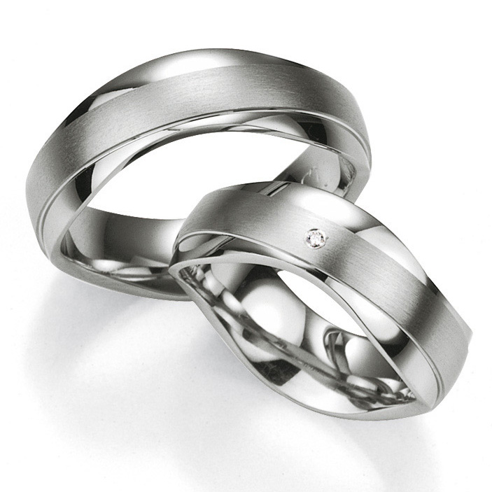 Trauringe der Marke Breuning, KOLLEKTION Silver with Diamonds 1. Herrliche Partnerringe in 925 Silber-platiniert seidenmatt und poliert. 1 Brillant 0,01 ct. W/SI. Breite 8 mm.