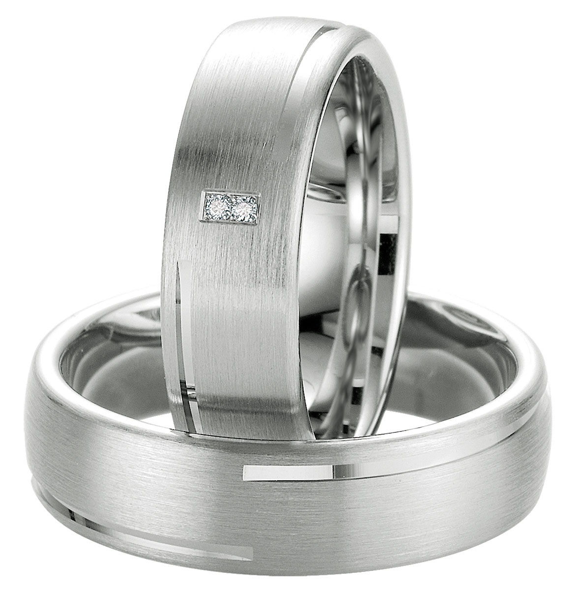Trauringe der Marke Breuning, KOLLEKTION Silver with Diamonds 3. Herrliche Partnerringe in 925 Silber platiniert seidenmatt. 2 Brillanten 0,013 ct. W/SI. Breite 6,5 mm.