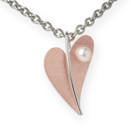 Edelstahl Anhänger AN210. Süßwasser - Zuchterle Ø ca. 6 mm. Rotvergoldung satiniert . Maße 30 x 20 mm . Nickelfrei und made in Germany.