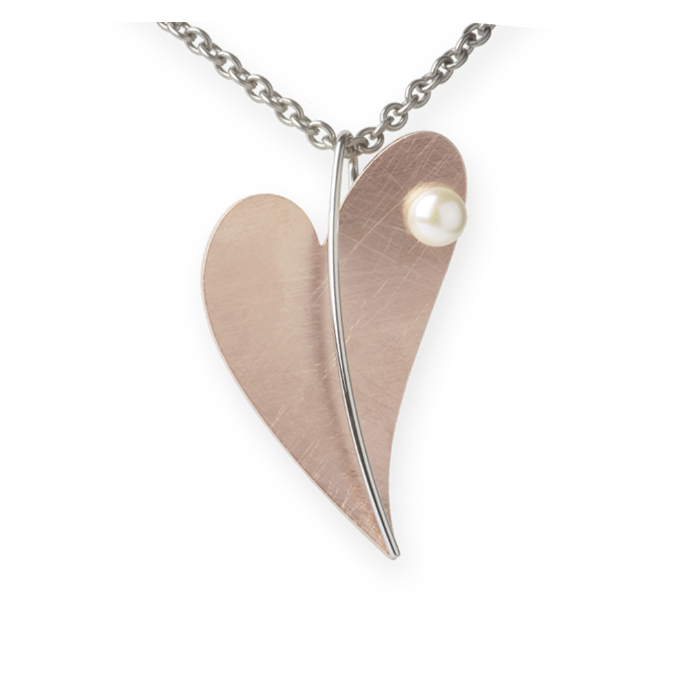 Edelstahl Anhänger AN216. Süßwasser - Zuchterle Ø ca. 8 mm. Rotvergoldung satiniert . Maße 54 x 37 mm . Nickelfrei und made in Germany.
