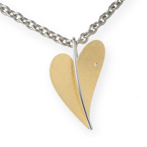 Edelstahl Anhänger AN227. Edelstahl Gelbvergoldung satiniert . Maße 20 x 30 mm . Brillant TW / SI 0,02 ct. . Nickelfrei und made in Germany.