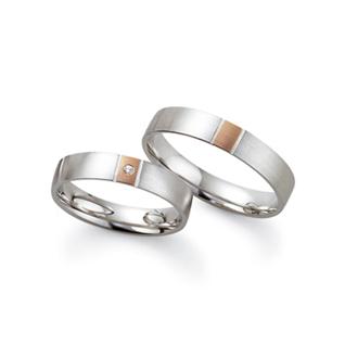 Manufaktur Fischer - Deutschland. Edle Trauringe in 333 Weiss- Rotgold seidenmatt. 1 Brillant 0,01 ct TW/SI. Breite 4,00 mm.