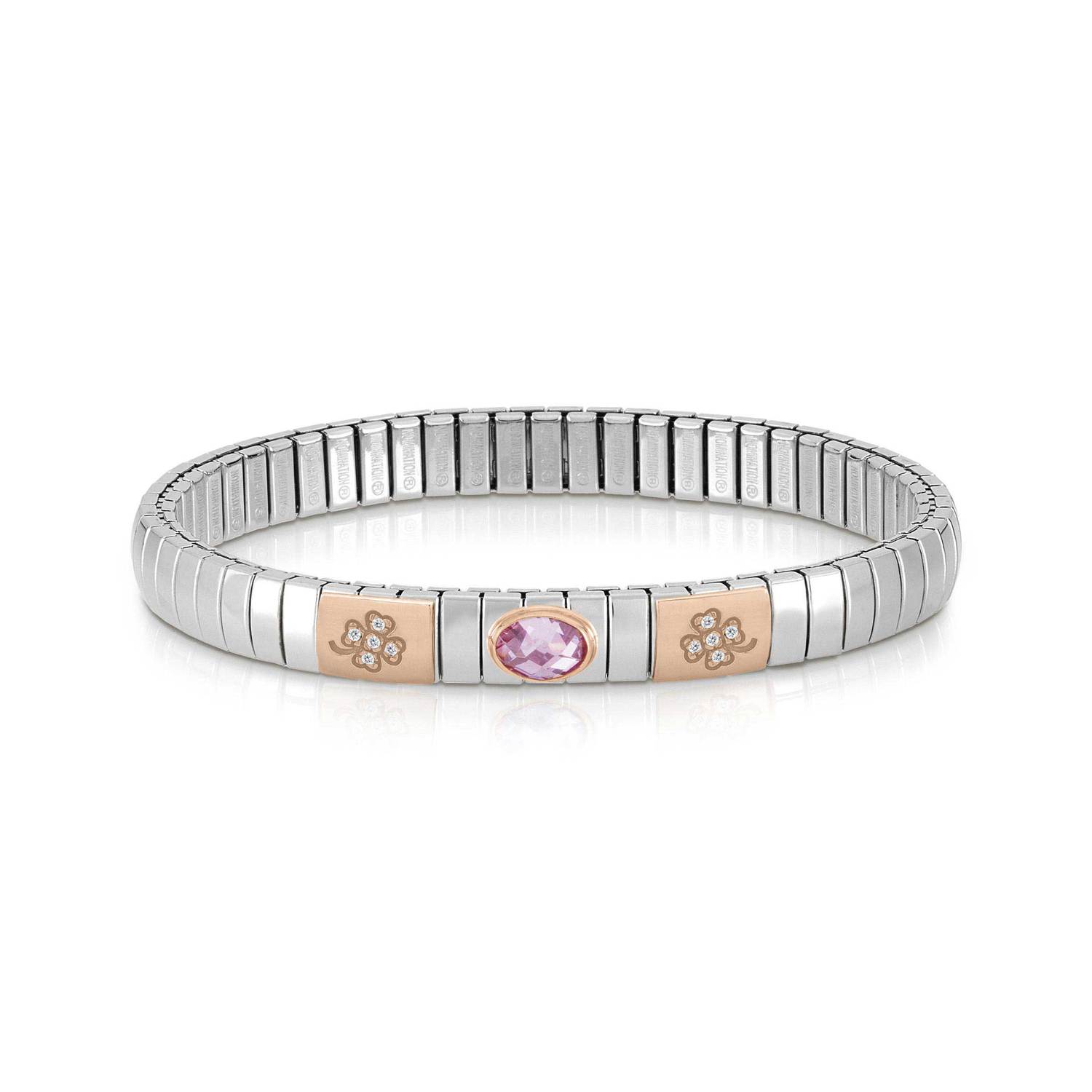 Armband XTE aus Edelstahl, 375er Gold, Cubic Z. und Zikonia ROSA KLEEBLATT