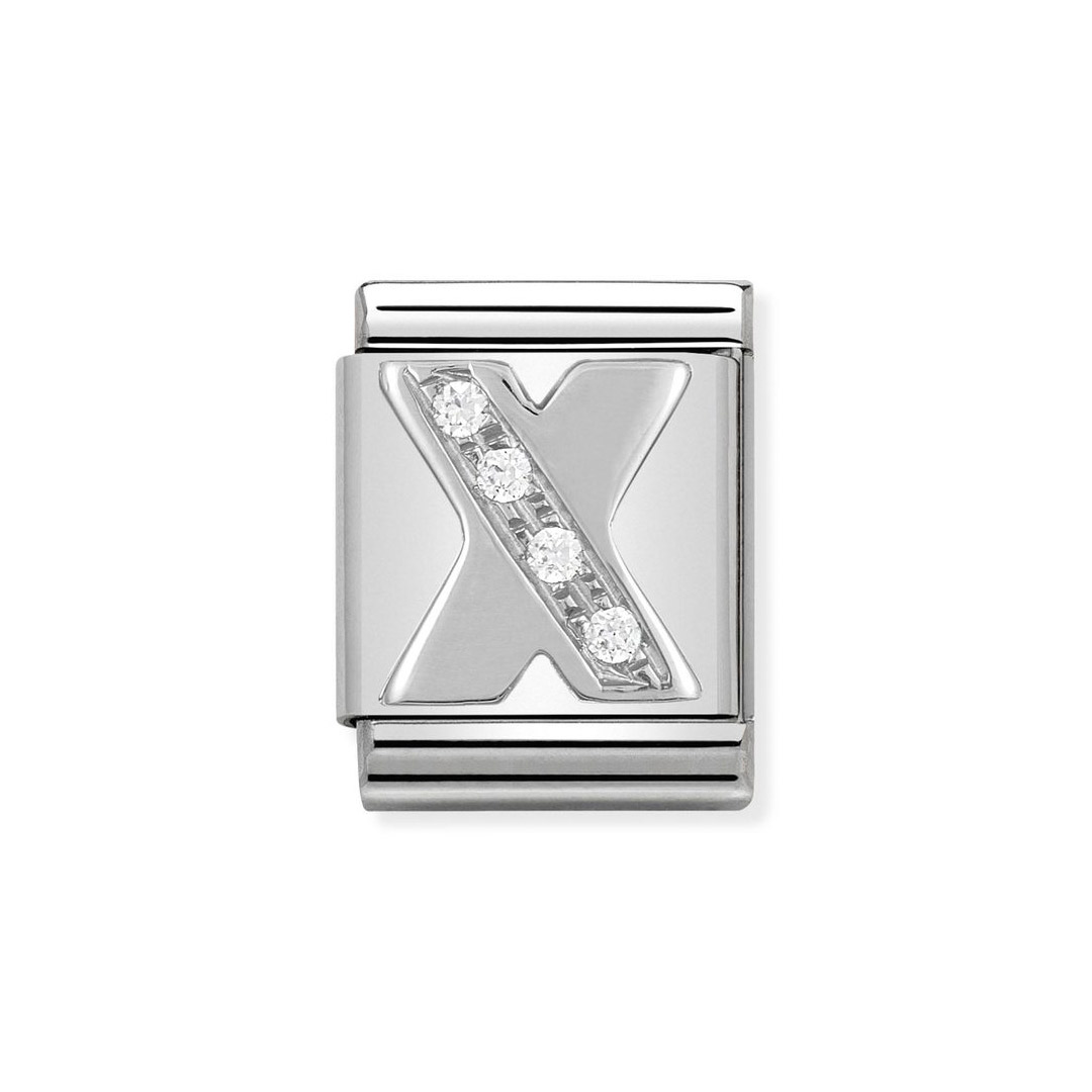 BUCHSTABEN Zusammensetzbar Big Stahl, Silber 925 und kubisch Zirkon X