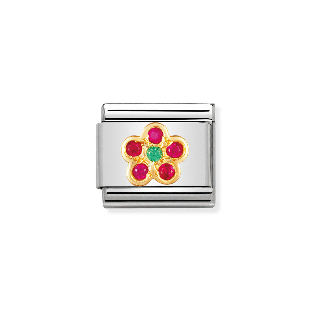 Comp. Classic NATURE Edelstahl, 18K-Gold und Cubic Zirc. Blume ohne Stiel ROT/GRÜN