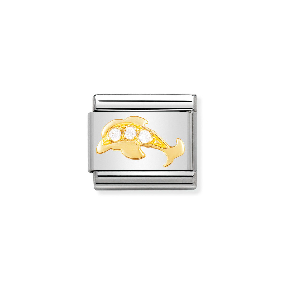 Comp. Classic TIERE - WASSER Edelstahl, 18K-Gold und Cubic Zirc. Delphin WEISS