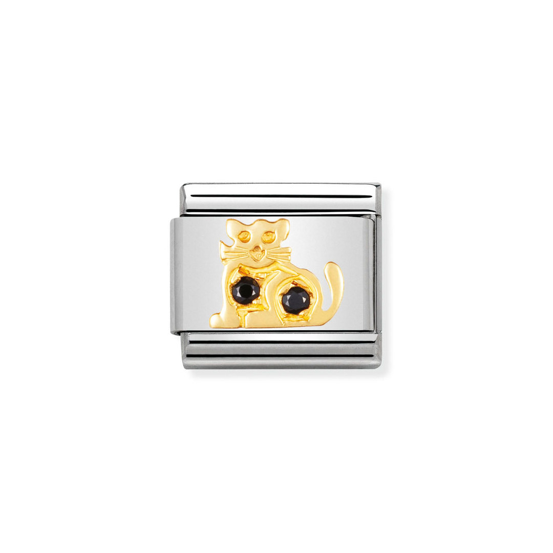 Comp. Classic TIERE - LAND Edelstahl, 18K-Gold und Cubic Zirc. Katze SCHWARZ