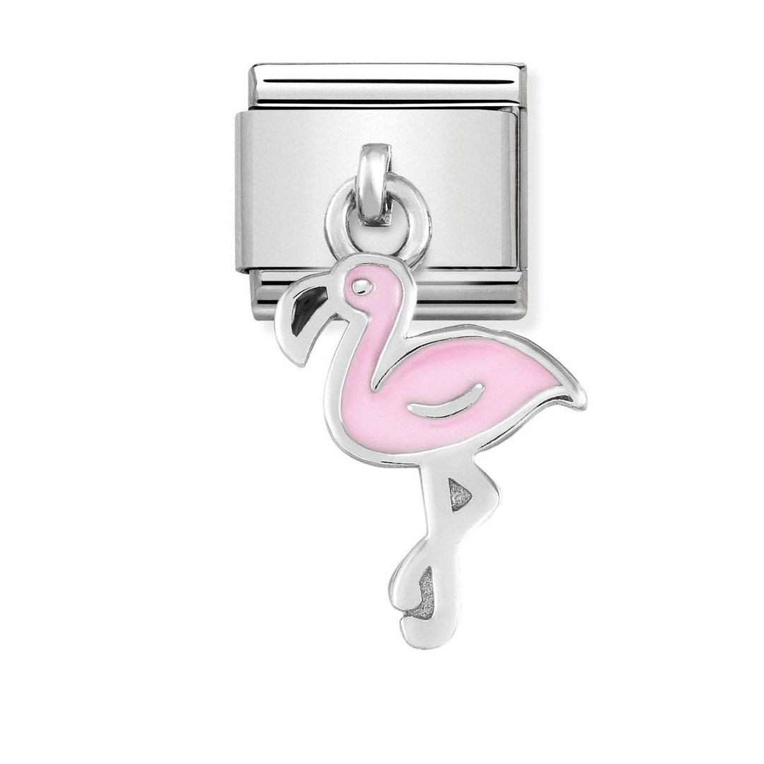 COMPOSABLE CLASSIC CHARMS aus Edelstahl, mit 925er Silber und Emaille verziert, Flamingo