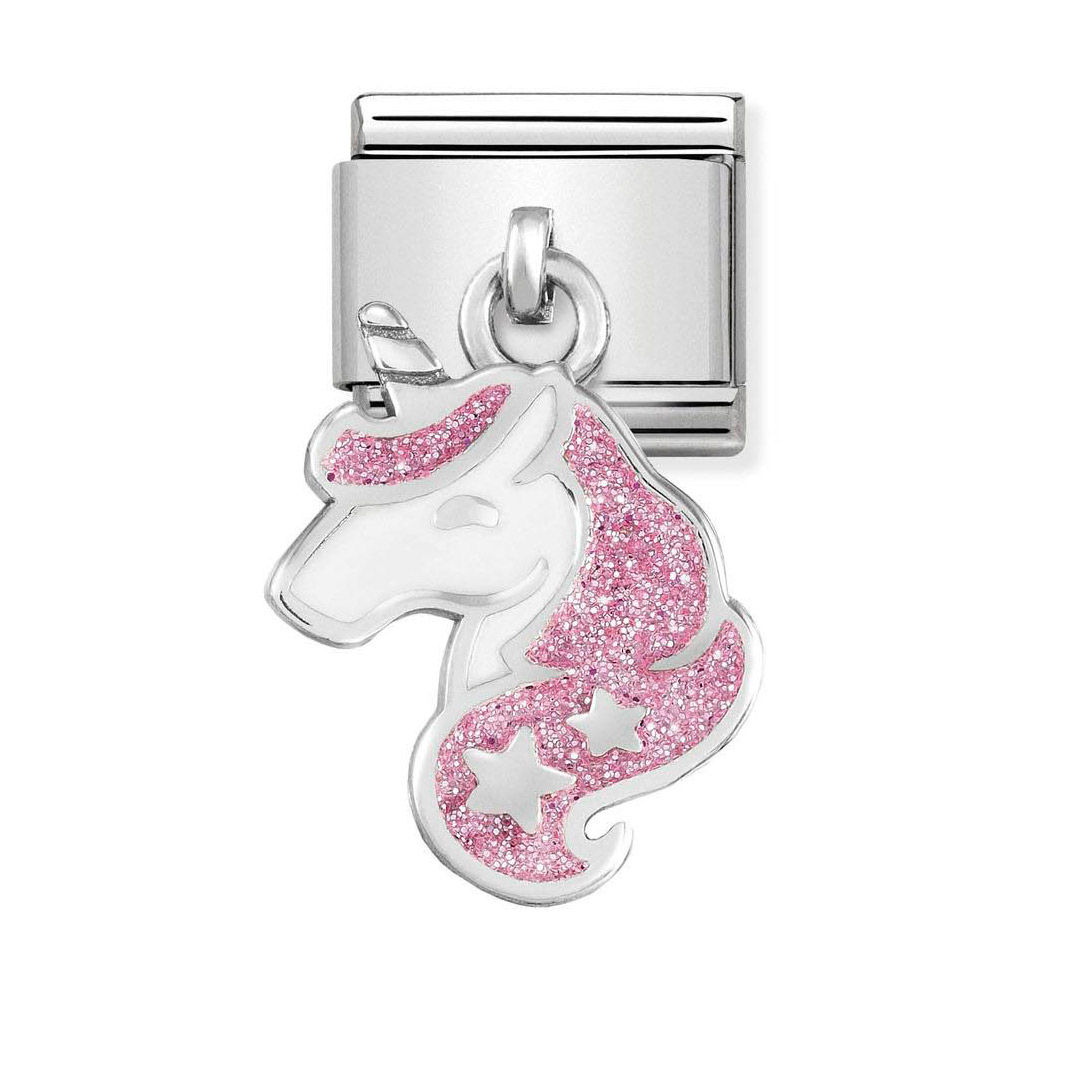 COMPOSABLE CLASSIC CHARMS aus Edelstahl, mit 925er Silber und Emaille verziert, Einhorn