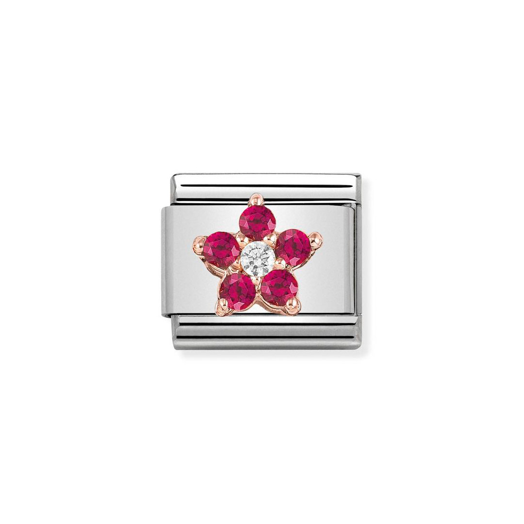 COMPOSABLE CLASSIC Edelstahl, mit 9Kt Rosegold und Zirkonia verziert, Blume rot/weiss