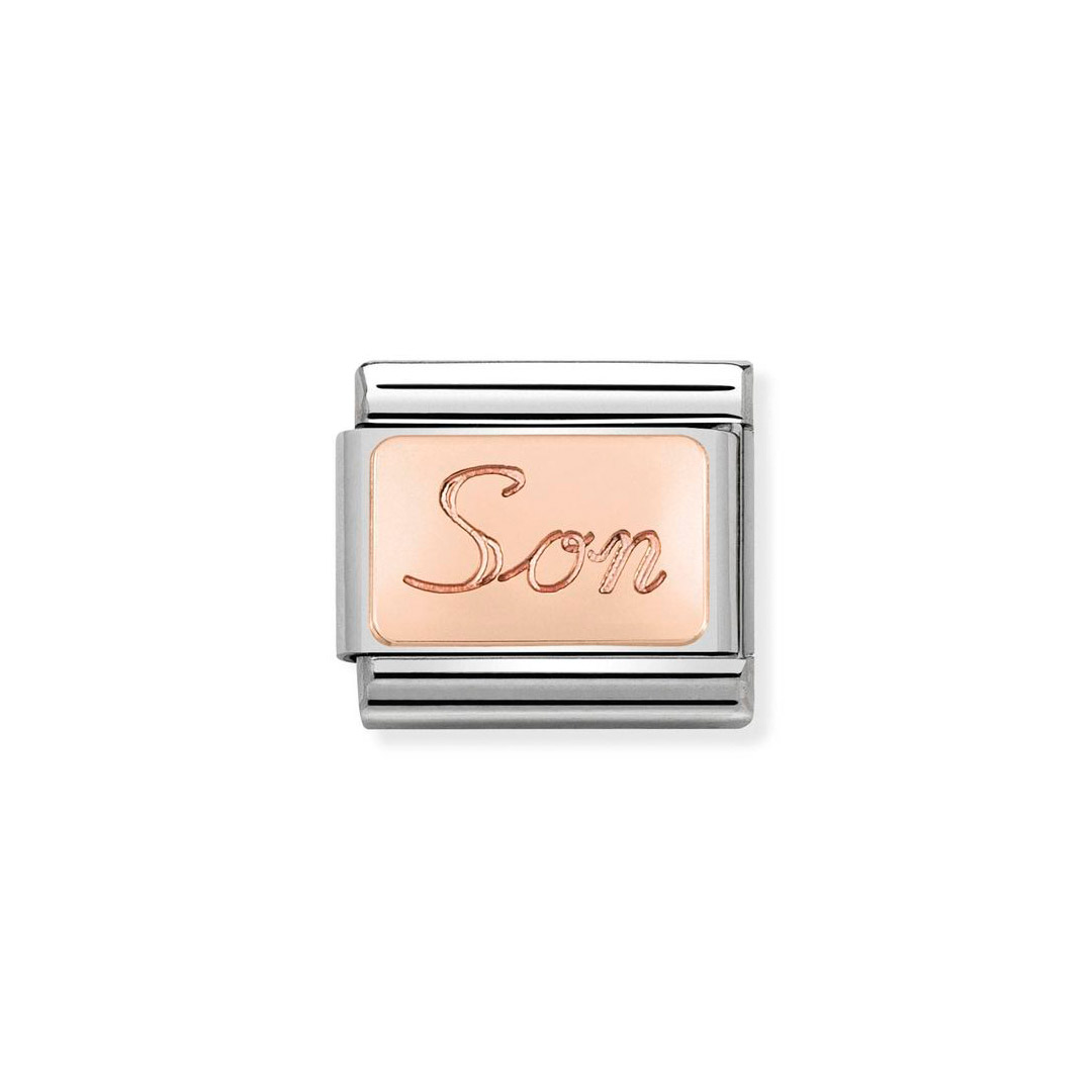 COMPOSABLE CLASSIC ENGRAVED SCHRIFTZÜGE aus Edelstahl, mit 9Kt Gold verziert Son