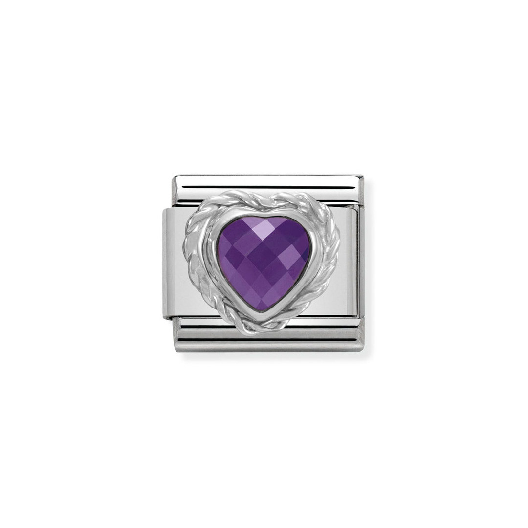 Composable Classic CZ FACETTIERT HERZ Edelstahl mit Kordel Fassung in Silber 925 VIOLETT