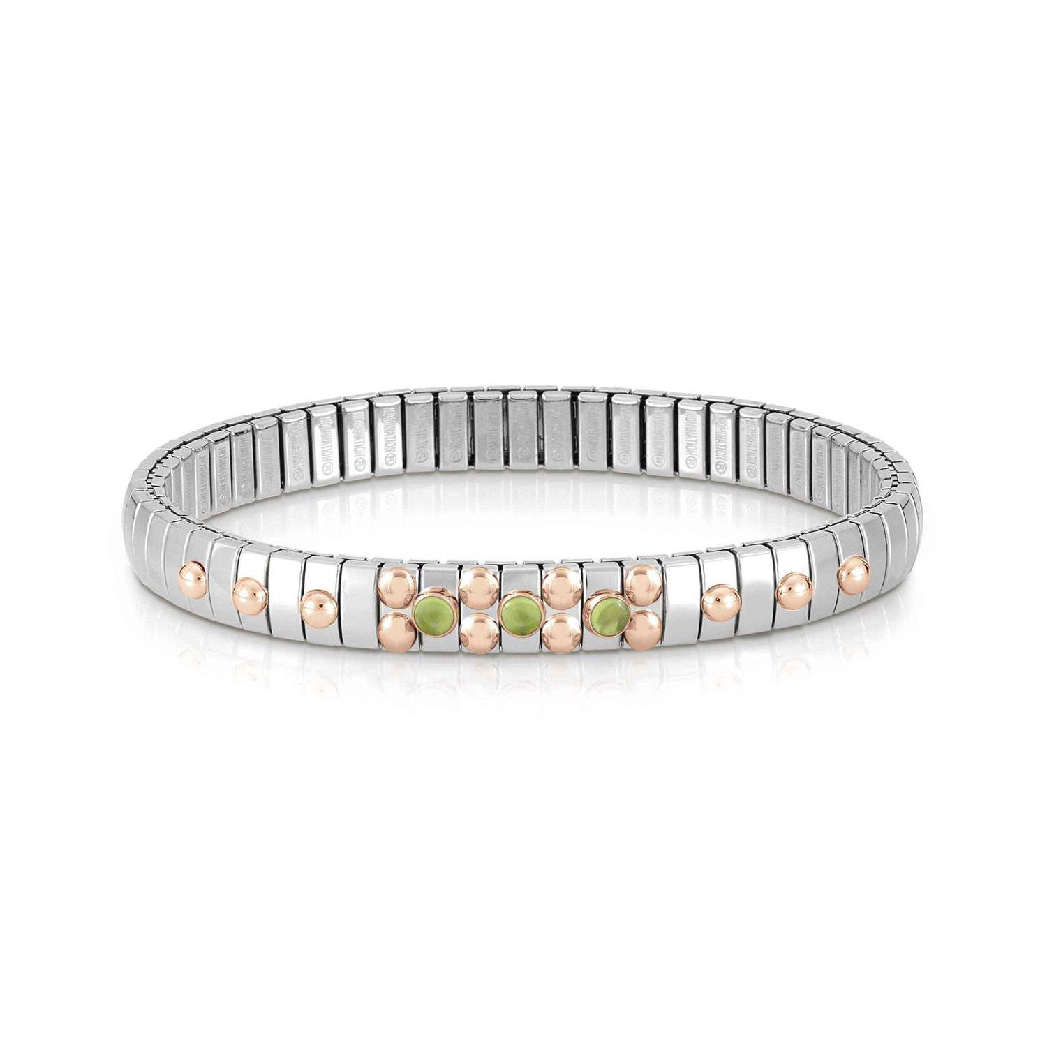 XTE SMALL Armband aus Edelstahl, mit 9Kt Rosegold und 3 Edelsteinen verziert PERIDOT