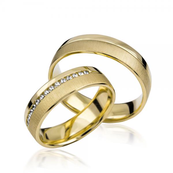 Neue Kollektion 2016 von Simon & Söhne - Gütersloh. Trauringe in 375er Gold, gerne auch in 585er und 750er Gold zu haben. Sowohl mit Zirkonia als auch mit Brillantbesatz. Hier abgebildet mit 15 Zirkonia 0,15ct ( Zuschlag mit Brillant tw-si 570EUR ) Breite 5,50mm.