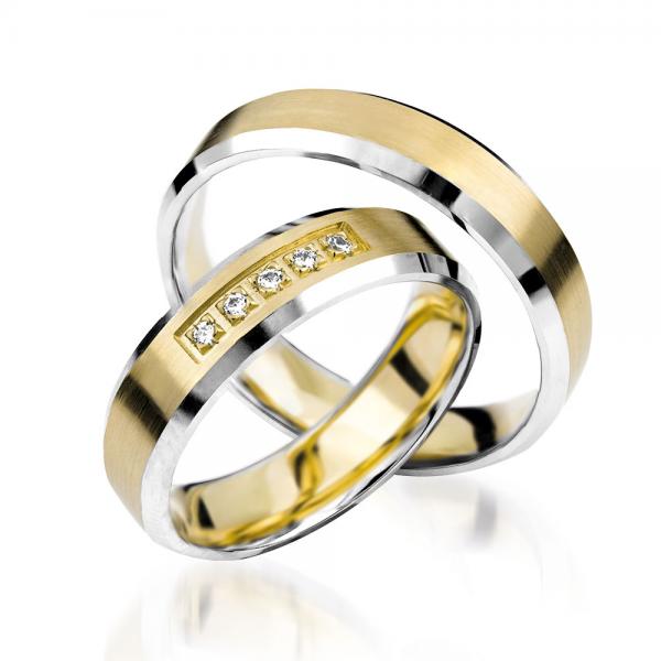 Neue Kollektion 2016 von Simon & Söhne - Gütersloh. Trauringe in 375er Gold, gerne auch in 585er und 750er Gold zu haben. Sowohl mit Zirkonia als auch mit Brillantbesatz. Hier abgebildet mit 5 Zirkonia 0,05ct ( Zuschlag mit Brillant tw-si 100EUR ) Breite 5,00mm.