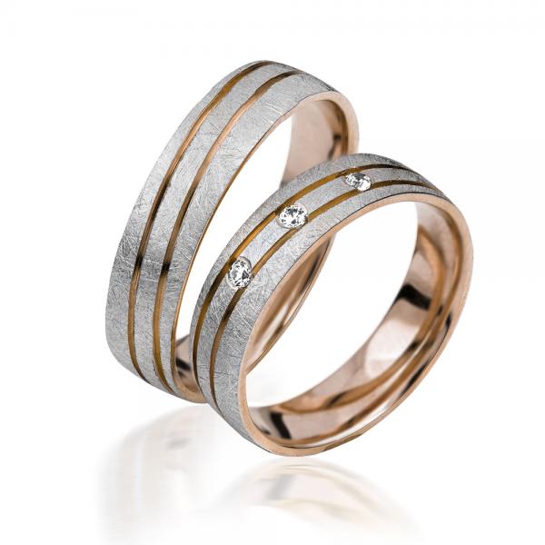 Neue Kollektion 2016 von Simon & Söhne - Gütersloh. Trauringe in 375er Gold, gerne auch in 585er und 750er Gold zu haben. Sowohl mit Zirkonia als auch mit Brillantbesatz. Hier abgebildet mit 3 Zirkonia 0,06ct ( Zuschlag mit Brillant tw-si 150EUR ) Breite 5,00mm.