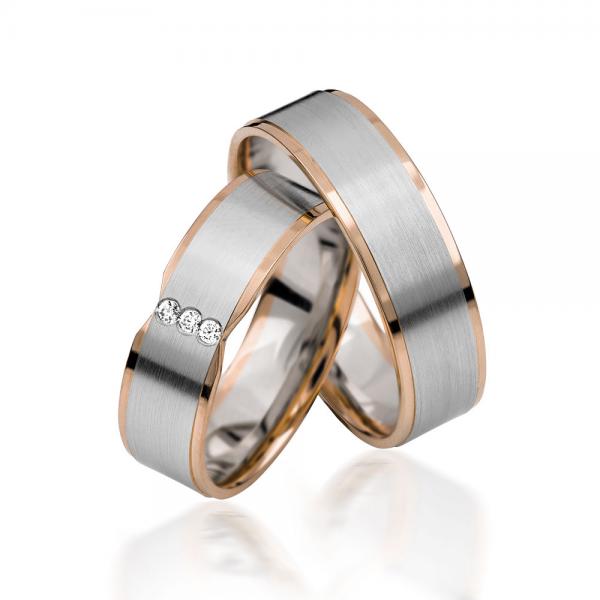 Neue Kollektion 2016 von Simon & Söhne - Gütersloh. Trauringe in 375er Gold, gerne auch in 585er und 750er Gold zu haben. Sowohl mit Zirkonia als auch mit Brillantbesatz. Hier abgebildet mit 3 Zirkonia 0,03ct ( Zuschlag mit Brillant tw-si 100EUR ) Breite 6,00mm.