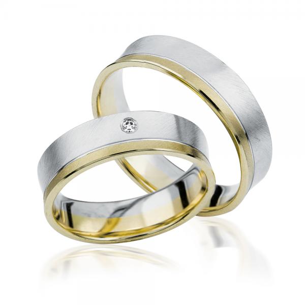 Neue Kollektion 2016 von Simon & Söhne - Gütersloh. Trauringe in 375er Gold, gerne auch in 585er und 750er Gold zu haben. Sowohl mit Zirkonia als auch mit Brillantbesatz. Hier abgebildet mit 1 Zirkonia 0,03ct ( Zuschlag mit Brillant tw-si 90EUR ) Breite 5,50mm.