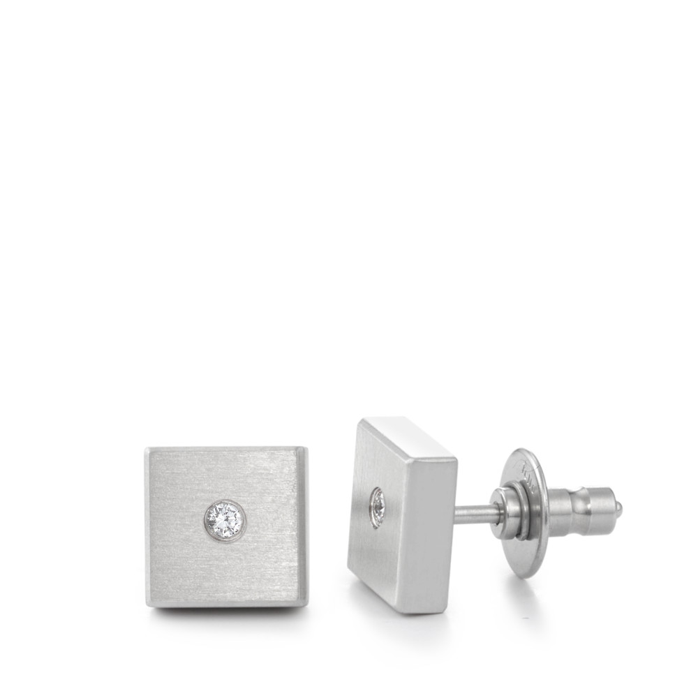 Edelstahl mit fein satinierter Oberfläche 2 Brillanten Top Wesselton si - Gesamtgewicht 0,04 Carat 8,0 x 8,0 mm Steckverschluss mit Federmechanik Made in Germany