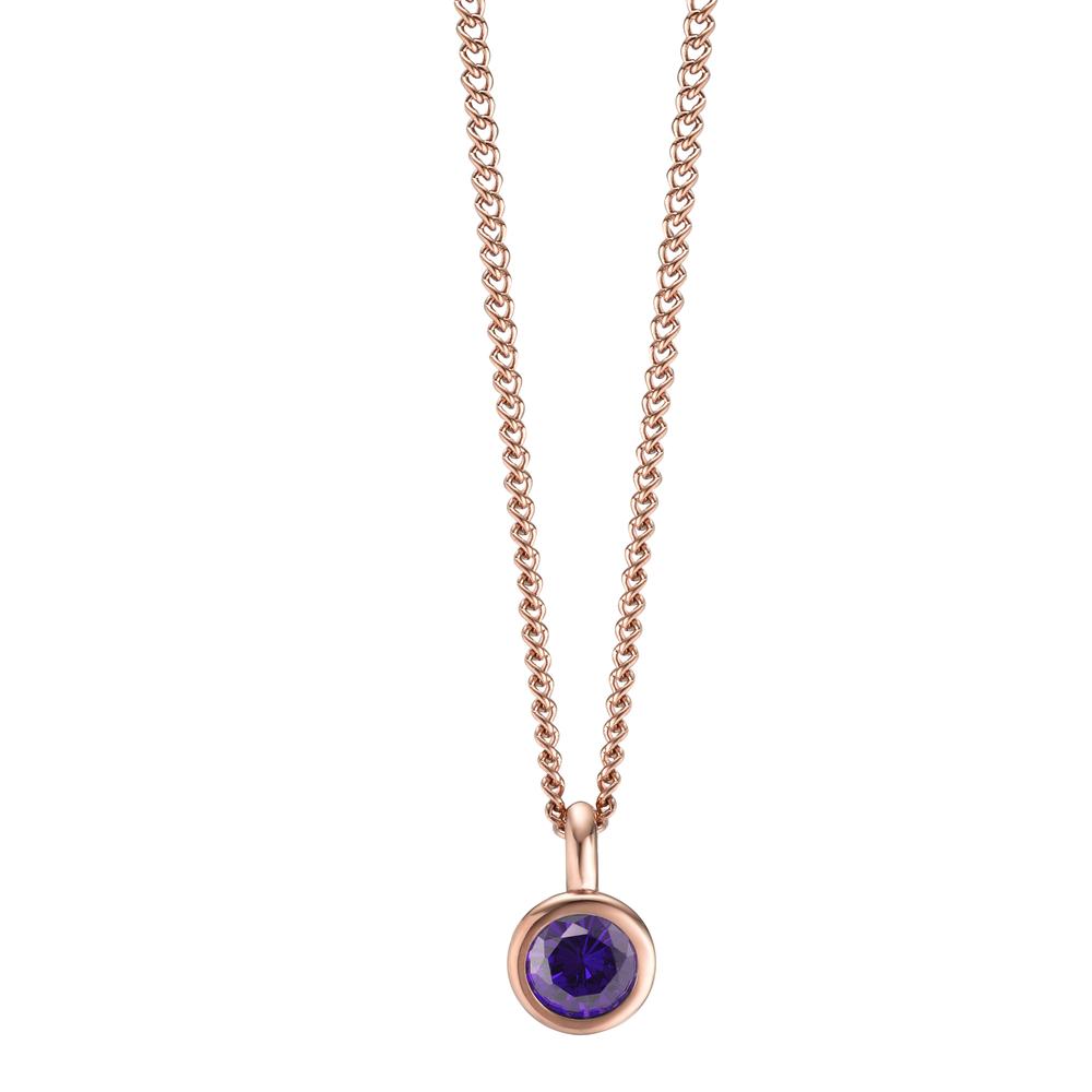 Hochwertige Verarbeitung in zeitlos schlichtem Design: An dieser roségoldfarbenen Edelstahlkette funkelt ein violettfarbener Zirkonia. Er reflektiert das Licht magisch und die beiden Farben harmonieren besonders gut zusammen. Ganz gleich, zu welchem Anlass sie getragen wird, überzeugt die dekorative Halskette durch die hochwertige Verarbeitung und ihrer puristischen Formensprache zugleich.