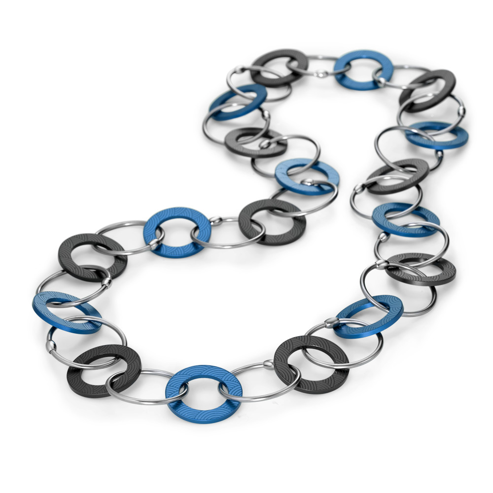 TeNo Kette ENDLESS "Lapis Blue loves Moonstone Grey" aus Aluminium und Edelstahl