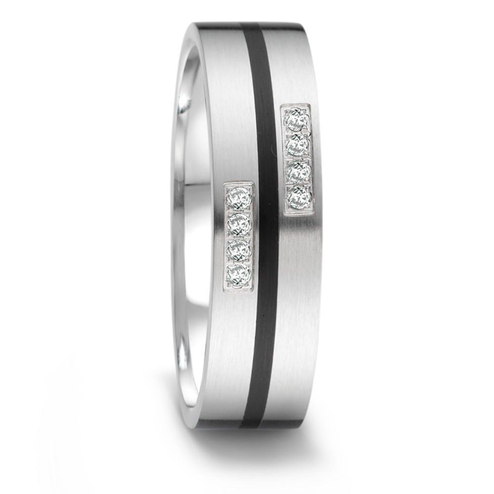 TeNo Edelstahl Partnerring TaMoR mit schwarzer Keramikund 8 Brillanten Top Wesselton si.