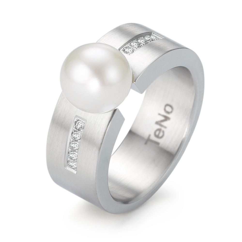 TeNo DELUXX Perlspannring mit 10 Brillanten im Pavee gefasst und weißer Zuchtperle