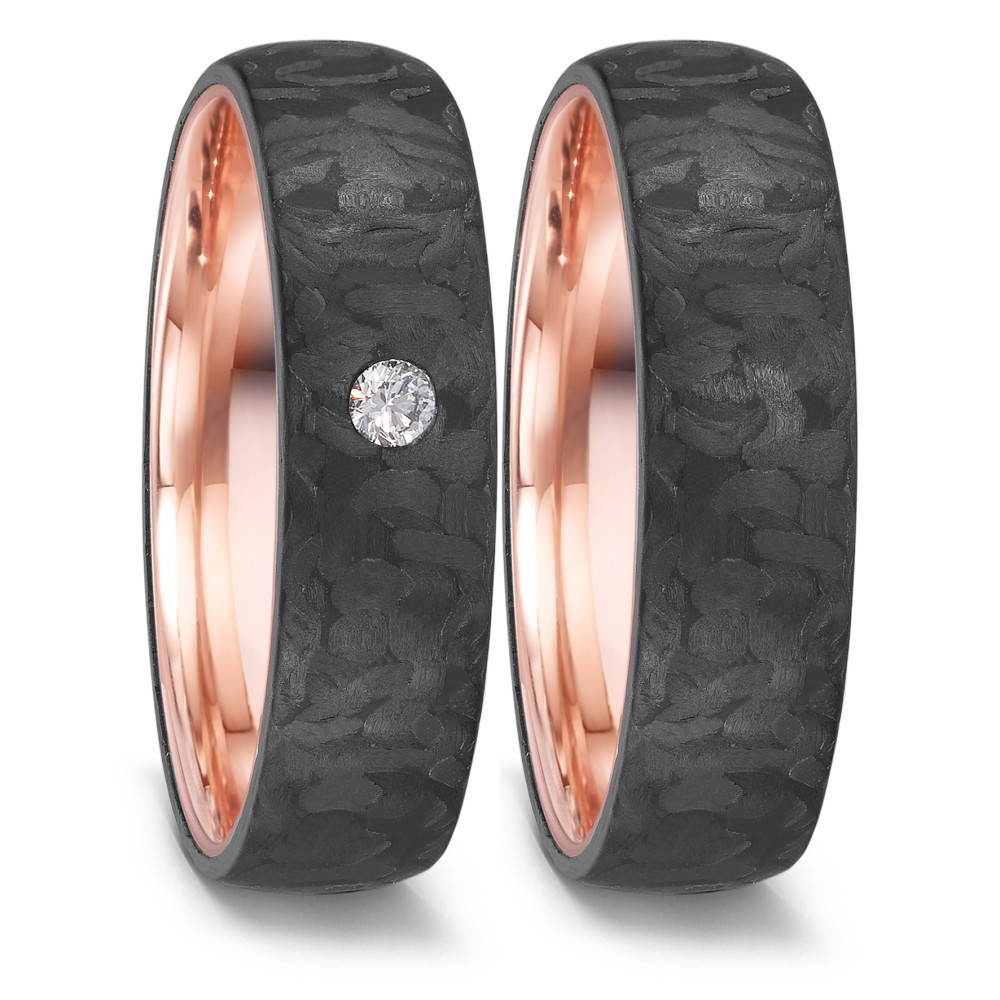 TeNo Love Rings VOLCANIC aus Carbon mit Gold sind sehr ausgefallene Partnerringe und Trauringe. Durch das schlichte und zeitlose Design stehen diese Manufaktur-Ringe für einen modernen Lifestyle. Die massiv goldene Ringschiene wird hier von schwarzem Carbon fest ummantelt. Zur Auswahl stehen fünf Ringbreiten in 3, 4, 5 und 6 mm sowie über 500 Diamant Varianten.